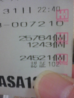 (貯玉し忘れて正確なレシートなし)